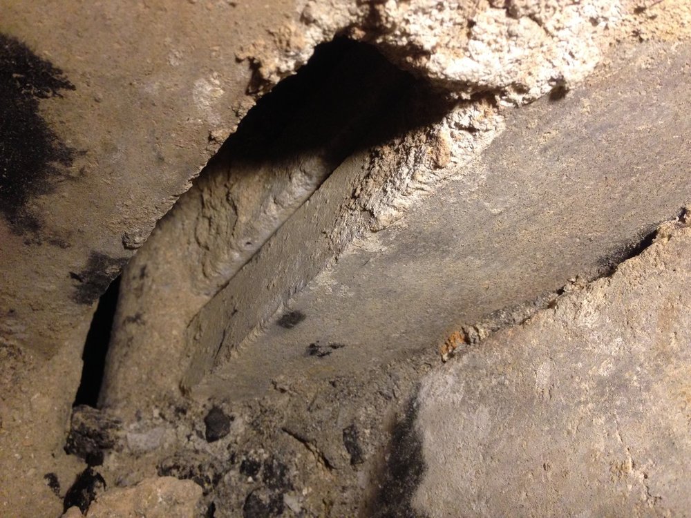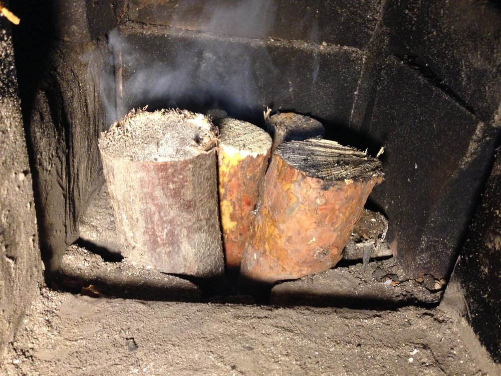 Ostatnio zrobiłem na szybko taki prosty palnik jak pisałem wcześniej z dwóch płytek 3cm złożonych razem , ze szczeliną pomiędzy nimi którą podawane jest PW z pod rusztu razem z PP. Palnik prosty do wykonania komora i palnik jest malutki bo akurat palę ekogroszkiem ale parę drewienek dało się upchać .Na foto widać szczelinę z boku między płytkami jest ona wkoło palnika.