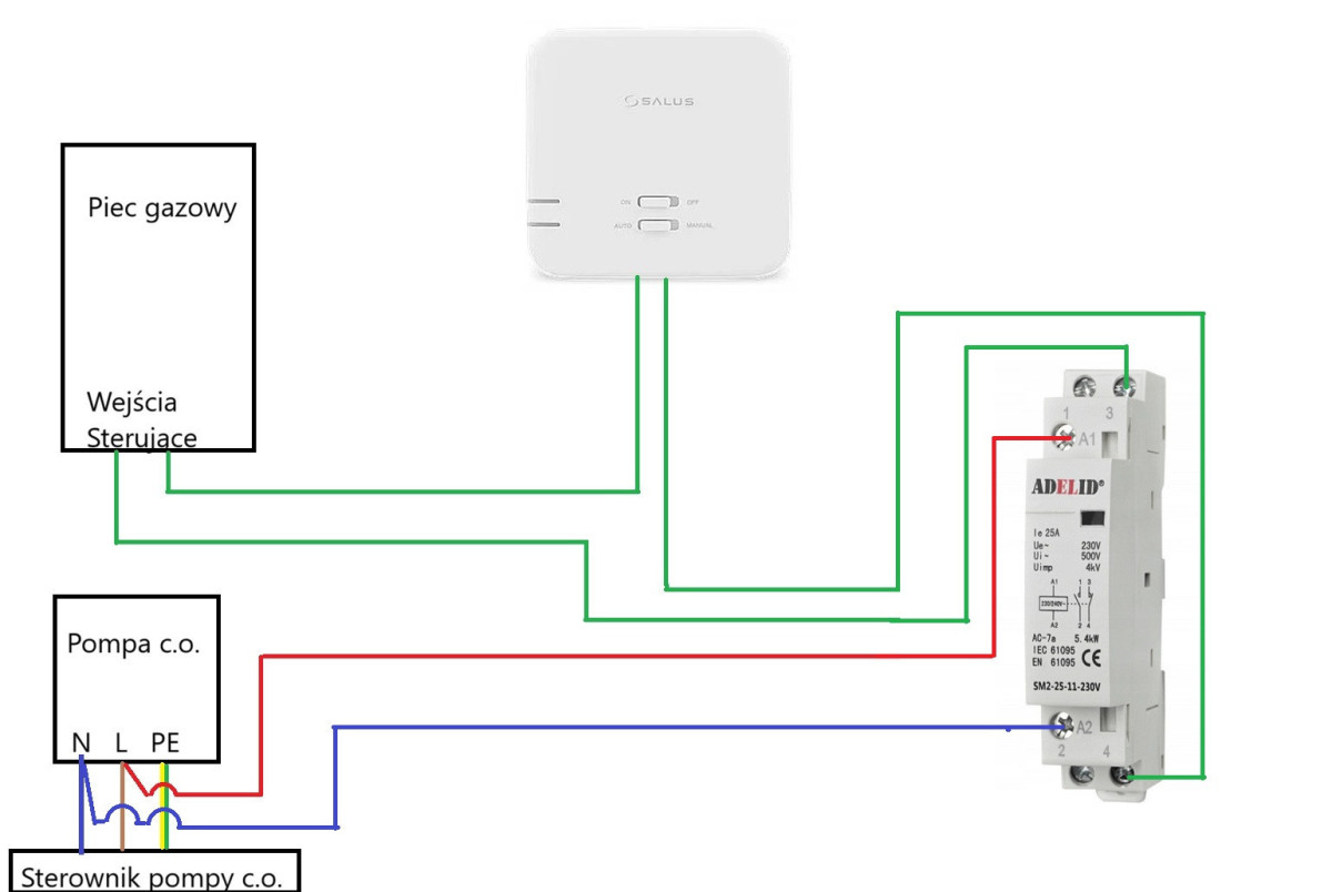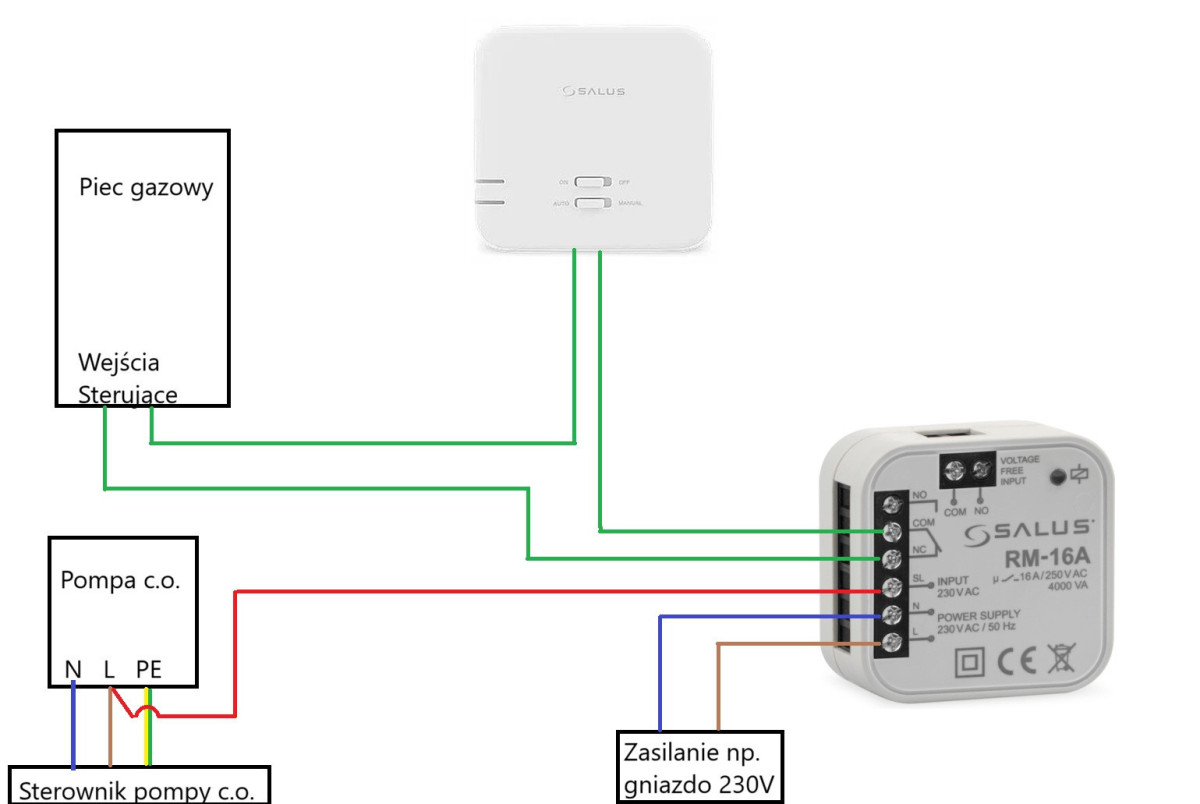 To jak chcesz kupić przekaźnik Salus RM-16A to możesz podłączyć jak na tym schemacie. Ten przekaźnik jest trochę inny niż ja pokazałem stąd różnica w podłączeniu.