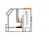 A ja wsadziłem palnik na wzór Defro DS. Wyspawałem coś takiego i wstawiłem to dosyć wysoko i piec już nie huczy tak jak wcześniej :( . Niebieski to ten palnik zrobione są w nim otwory z PW wymiar palnika to 18x5. Bardziej dymi do komory zasypowej ale jak by mniej na komin, niestety ciemno i ciężko zobaczyć