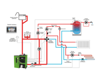 Schemat mojej instalacji w poście #64, na etapie projektu do przetargu schemat był bez pompy kotłowej. Ogarnięty wykonawca zmodyfikował projekt pan inżyniera i dołożył pompę kotłową i chwała mu za to, bo pewnie byłyby problemy z uzyskaniem właściwej temperatury powrotu i zadanej temperatury na instalację. Rusztu awaryjnego nawet nie testowałem, chociaż mam jeszcze drewno opałowe, wcale nie tęsknie za powrotem do rozpalania, dokładania i czyszczenia kotła z popiołu przy paleniu tradycyjnym. Pellet to komfort i wygoda może nie taki jak gaz, ale za to tańszy od gazu i wcale nie droższy od węgla i drewna. Zerknąłem na Twój schemat instalacji z dokumentacji przetargowej i co podkreślę nie jestem hydraulikiem to powiem, że ktoś się mocno nad tym schematem napracował. Moim zdaniem przerost formy nad treścią, można to dużo prościej zrobić, a czy będzie działał prawidłowo niech inni koledzy się wypowiedzą.