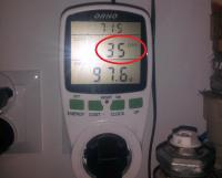 Do licznika energii podpięte wszystko, kocioł ze sterownikiem, podajnikiem i palnikiem oraz 3 pompy. Wszystkie pompy elektroniczne, do CWU i kotłowa ustawione na najniższy bieg pobierają po 5W (włączają się jak jest taka potrzeba), pomba obiegu co (pracuje cały czas) w trybie auto pobiera w zakresie 10 - 20W w zależności od zapotrzebowania.
