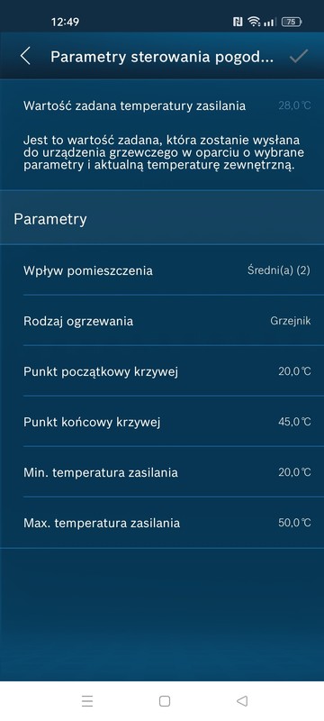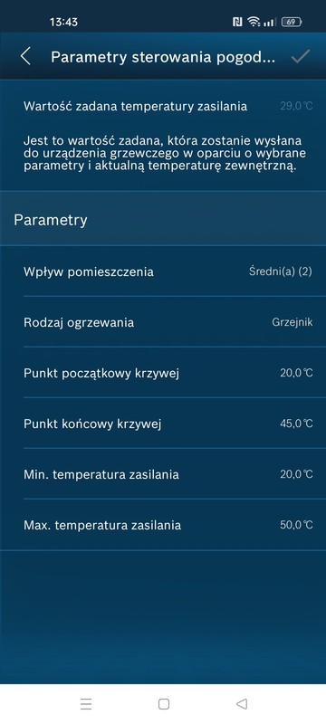 Teraz pracuje na 29 stopni, przy temperaturze 21,5 stopnia w domu, grzejniki dobierane na parametr 55/45/20, głowice odkręcone na 5.