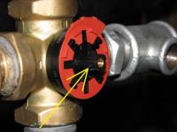 Zdjęcie które zamieściłem przedstawia wycięcie dzięki któremu możesz określić jak masz ustawiony zawór. Jeśli ustawisz pokrętło w połowie skali gdy zdejmiesz je wycięcie powinno być dokładnie tak jak na zdjęciu. Wtedy będziesz wiedział że zawór jest ustawiony na mieszanie.