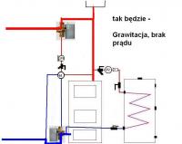 Witam po przerwie Aktualnie, zamontowałem 4d i jestem bardzo zadowolony, zamontowałem jednak według schematu pierwszego. Wzrosła stałopalność pieca. Nie mam sterownika do 4d, tylko ręcznie go steruje. Teraz, gdy ciepło na polu, to 4d to rewelacja. Nie muszę grzać się w domu, okien otwierać, bo na piecu nastawiam 60, a na dom ile chcę. Nie byłem zwolennikiem 4d, ale teraz to POLECAM Zamontowałem tak, jak na schemacie 1 Po kilkunastu dniach użytkowania, podzielę się uwagami, może komuś się przyda. Zawór 4d nie jest na tyle szczelny, by odciąć skutecznie obieg pieca, od obiegu CO. Przy grzaniu samego bojlera, nie wystarczy wyłączyć pompy CO, trzeba zamknąć zawór ręcznie u góry, bo przez zawór różnicowy piec grawitacyjnie zasila CO. A z drugiej strony gdy zamknę zawór na CO (grzeję sam bojler), to zabezpieczenie przed wyłączeniem prądu w postaci różnicowego zaworu, nie zadziała, bo zawór za nim zamknięty. Poza tym nie chcę ręcznie zamykać CO, tylko odcinać poprzez wyłączenie pompy (wygoda). Człowiek z natury jest wygodny, jak zażyje trochę wygody, to chce więcej. Postanowiłem przerobić układ tak jak na schemacie 2. Oto jego działanie: Po wypaleniu pieca zawór 4d będzie zamknięty, ułatwi to rozruch pieca, szybciej osiągnie temp. Następnie po osiągnieciu nastawionej temp, nastąpi otwarcie 4d, który będzie sterowany pogodowo. W lecie będzie grzany bojler, odcięcie CO będzie realizowane poprzez wyłączenie pompy. Zawór zwrotny za nią zatrzyma grawitację. W momencie osiągnięcia za wysokiej temp, nawet w lecie układ uruchomi pompę CO, w celu obniżenia temp pieca, to na wypadek gdyby bojler nie był w stanie "zapanować" nad piecem. Zawór różnicowy wywalam, bo nie potrzebny. W razie braku prądu, zastosuję dwa elektrozawory, które przy braku prądu, niezależnie od położenia 4d umożliwią grzanie grawitacyjne całego domu. Przy braku prądu elektrozawory samoczynnie przełączają się na grawitację. Elektrozawory 1 cal w Insbud nie są drogie. Tak to sobie obmyśliłem, co wy na to?