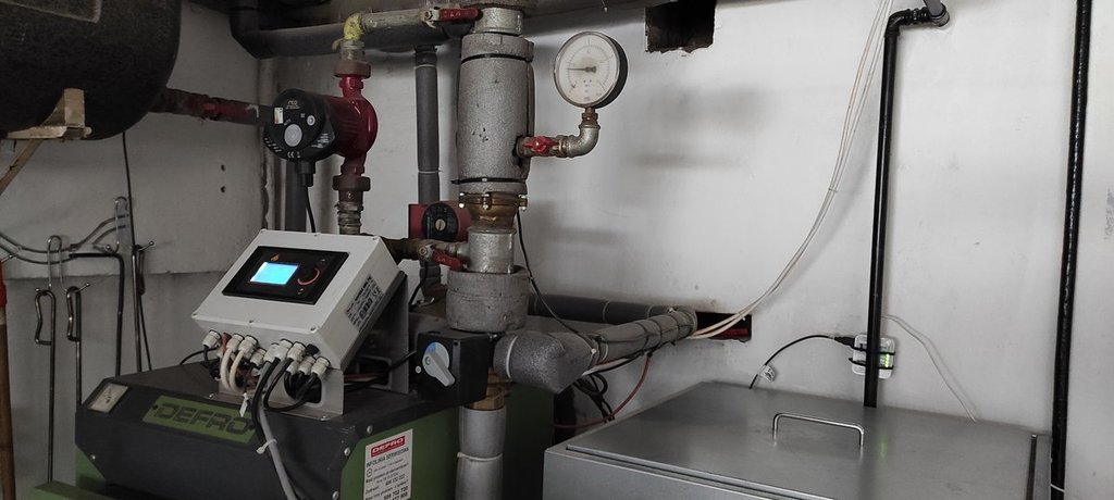 Witam Przerobiłem piec Defro KD 2 15 kW na pellet. Palnik VIP 16 kW . W skład zestawu : VIP 16 KW, podajnik 2m, sterowanie PLUM ecoMAX850P2, zasobnik na 200 kg, pokojowy regulator przewodowy ecoSTER TOUCH, moduł internetowy ecoNET, czujnik pogodowy, czujnik temperatury spalin. Użytkuję ten zestaw od 16 czerwca. Dom ~180m2 + bojler 120l. Na grzanie samego bojlera dla trojga domowników - średnio mi wyszło ~4 kg pelletu na dzień. W największe mrozy jakie były tej zimy (- 24) przy ustawieniu temp w domu na termostacie w dzień na 23 , a obniżenie nocne na 21,8 szło mi niecałe 30 na dzień . Normalnie bez super mrozów to ~25 kg bo zasyp 200 kg starczał mi na 7-10 dni. aktualnie przy temperaturach w dzień +2-4 stopnie, noc - 3-5 stopni idzie około 20 kg. A użytkowanie to bajka - zasypać pojemnik, i patrzeć jak się pali ? Raz na tydzień zwykle czyszczę tylko ruchomy ruszt palnika - zdejmuje się dwie zapinki i wypina kostkę zasilania - wyjmuje się wtedy cały ruszt na zewnątrz. Prościej się nie da. I ruszt przejechać szczotką drucianą i po robocie. I tyle - słownie nic przy nim się nie dzieje. Tylko sypać i czasem ruszt oczyścić, no i raz na jakiś czas odkurzaczem czyszczę piec. Zero spieków, zero niewypalonego pelletu. A i kupiłem sobie zasilacz/ups VOLT Sinus 1000Pro + aku AGL 100Ah i nawet o zasilanie się już nie martwię. Palnik mam założony w dolne drzwiczki nad rusztem . Jedynie ze względu na dziwny układ drzwi powyżej panik nie bezpośrednio do drzwi ale z flanszą dystansową. Ją trochę po swojemu tylko wyizolowałem. I jak widać moja instalacja to dwa obiegi z osobnymi pompami i zaworem 4D z siłownikiem. A tu mój temat przed wyborem palnika :