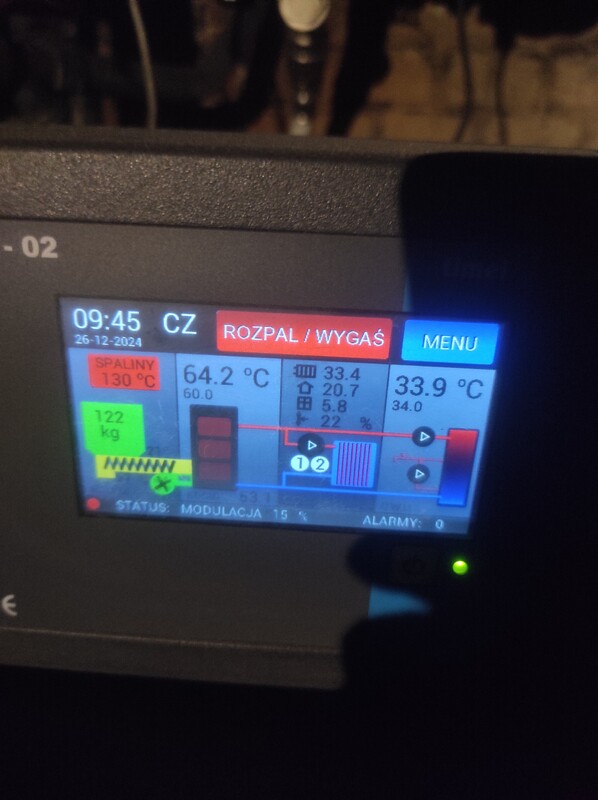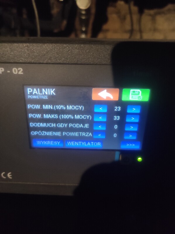 No i pochwaliłem dzień przed zachodem słońca. Zeszłem do piwnicy i palenisko prawie wygasło.Musialem dodać paliwa i dodatkowo włączyć osobno dmuchawę żeby się wszystko rozżarzyło. Powietrze mam tak jak wyżej na zdjęciu a w instalatorze moc wentylatora Min 16 Max 60 Dodam że dzisiaj jest bardzo gorąco i w tym czasie nikt nawet z wody ciepłej nie korzystał Czyli on tylko na podtrzymanie powinien chodzić ,a raz wcześniej jak zeszłem to i tak spadł poniżej temperatury rządnej (mam teraz 53 stopnie ustawione)
