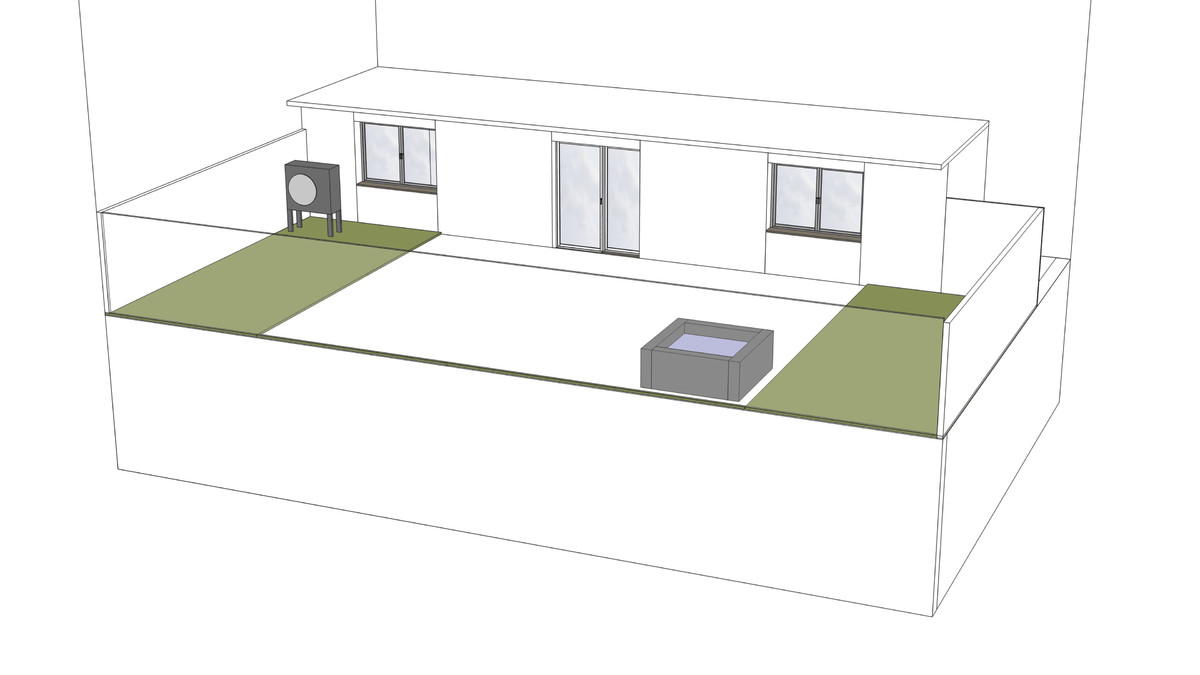 Budujemy budynek gospodarczy z tarasem i na niego z dołu muszę przenieść PC. a jak widać na załączonym projekcie prawdopodobnie będzie stać pod oknem.Część wewnętrzna jest w byłej kotłowni,czyli pod środkowym oknem.Myślałem o dachu,ale mam drewniany,pokryty papą więc przewiduję mocne wibracje więc to odpada.