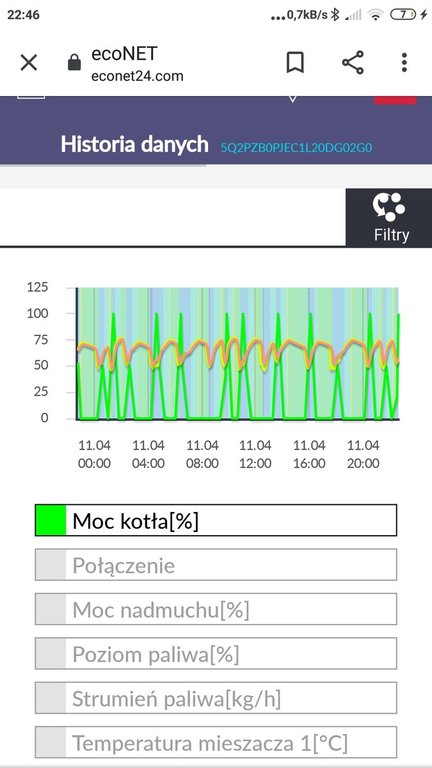 Grzejniki dobierał do całego domu instalator tak samo i kocioł.Co do spalania do tej pory to napisałem max 2,5t i drewno ale wtedy były zimy mroźne a teraz praktycznie jej nie Ma. Co do tego spalania to wydaje Mi sie,że ocieplenie jakoś pomoże.Najlepsze jest to że doszedłem do takich ustawień,że pellet się bardzo ładnie wypala za co bardzo dziękuję :) Może pierwszy sezon tylko taki bedzie.Doł ustawiony jest na termostacie pokojowym jednak po odpaleniu góry na więcej niż 35stopni to kocioł chodzi cały czas.Z strony ciepło właściwe wychodzi że teraz bez ocieplenia kociołek jest ciut za duży ale po ociepleniu potrzebne jest praktycznie połowę mocy. No nic czekam na wiosnę i ocieplenie domu.Tylko czy po ociepleniu nie będzie tak,że kocioł będzie za duży i będę potrzebował bufora lub czegoś i tak w kółko będzie wiecznie coś.Dokladnie od 18listopada do teraz spalone zostało 3.5t