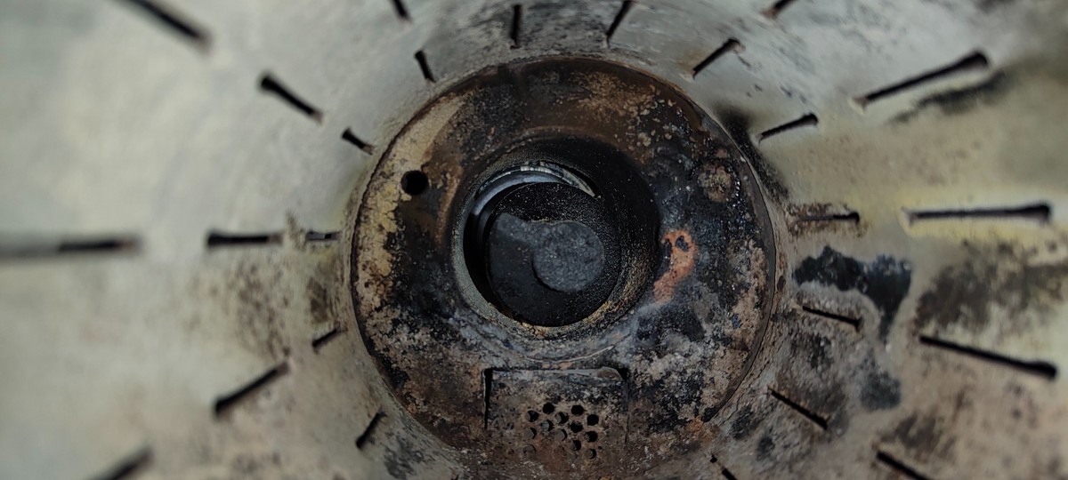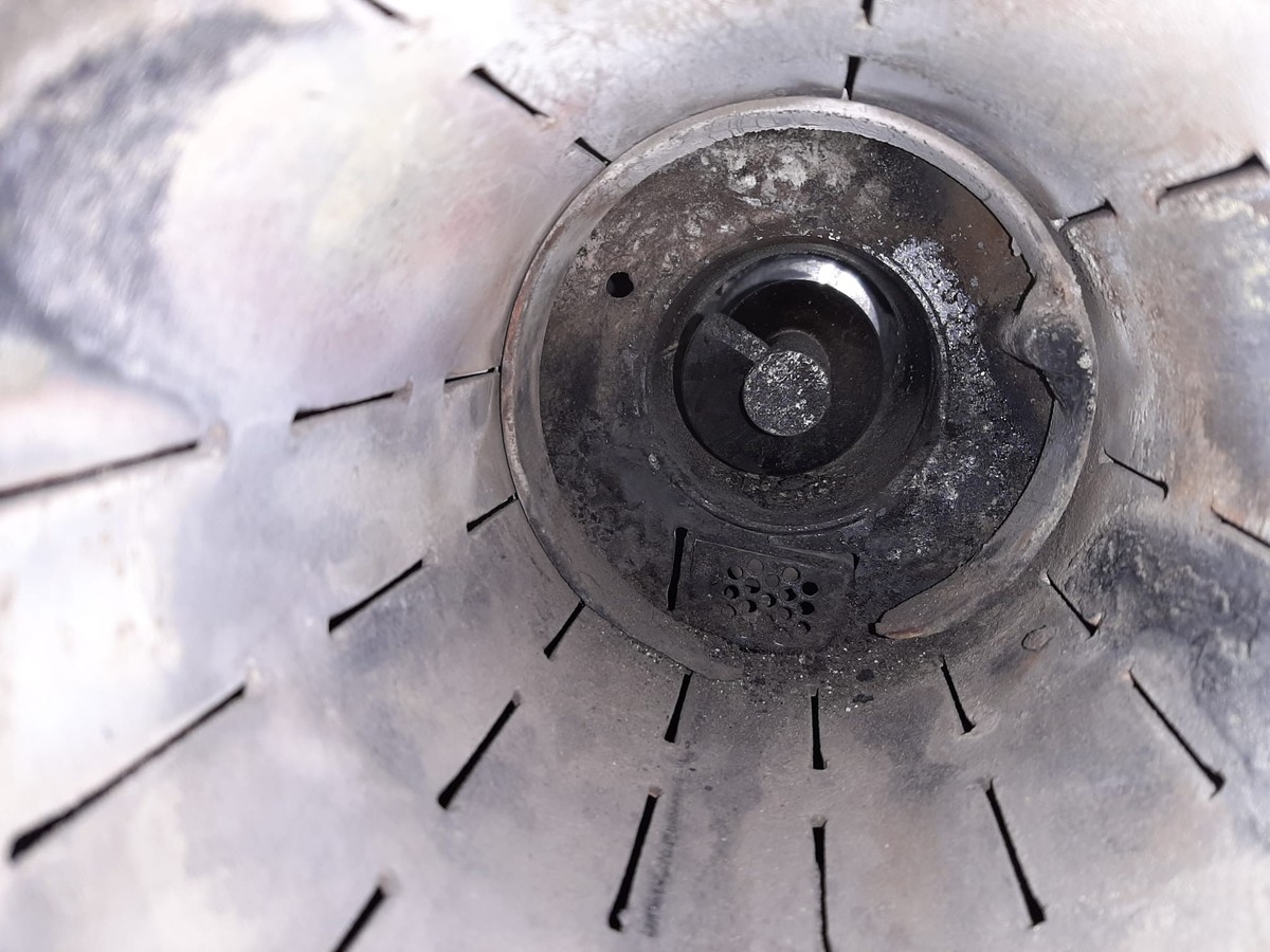 Okazuje się, że jak nie ma mechanizmu czyszczącego to jego otwór jest zaślepiony, no chyba że sam się z czasem zakleił. Nie chciałem grzebać. Na zdjęciu widać otwór czujnika jasności płomienia. -