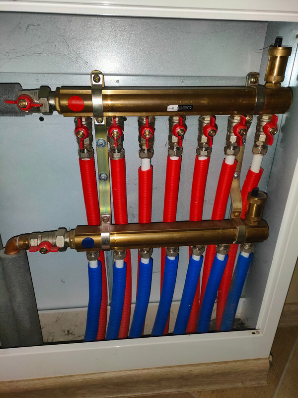 @sambor dodałem zdjęcie rozdzielacza, do niego można zamontować rotametry ? Czy te rotametry są krytyczne ? jeżeli tak dla czego ? 😞 zasmuciło mnie to.. tego nie przewidziałem w inwestycji... Mała moc kotła 10kw ? według cepłoapp niby 8kw to maks do mojego domu 120m2 użytkowej ściany bloczek komórkowy + 15cm styropianu grafitowego, w podłodze od 10cm do 15cm styropianu. Okna 3 szybowe + rolety zewnętrzne ale nie zawsze zasłaniane na noc. Niestety wentylacja grawitacyjna może kiedyś będzie rekuperacja. Ten kocioł nie pociągnie CWU i Ogrzewania w pompach równoległych ?