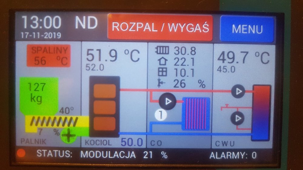 Wczoraj wieczorem zaktualizowałem do najnowszego softu, a rano takie hopki. Musiałem wyłączyć mieszacz żeby włączyła się pompa CO bo nie grzały grzejniki. Fabryczne przywróciłem po aktualizacji i skalibrowałem wyświetlacz. Dziś wrócę do poprzedniej wersji.