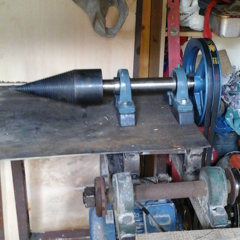 moją łuparkę robił ojciec jakieś 7 lat temu była trochę uboższa i mniej profesjonalna niż kolegi wyżej, ale do rzeczy u mnie silnik 3kW 1400 obr. zredukowane do 800-900 dokładnie nie pamiętam, włącznik wiadomo LP, czasem potrafiło solidnie zakleszczyć(u mnie 90% szło buka) zwłaszcza sękate a kusiło czasem z lenistwa położyć na blat pod świder zamiast odłożyć na bok... Wałek z łożyskami samonastawnymi na blacie stalowym 4 mm przykręconym do ramy, którą wykorzystywałem też jako cyrkularkę(dokręcałem drugi blat). Na zdjęciu(poniżej) nie widać bo jest z początkowych etapów prac nad łuparką, ale na blacie pod świdrem był klin. 2 lata temu teściu przerobił świder do traktora