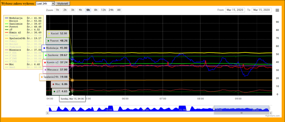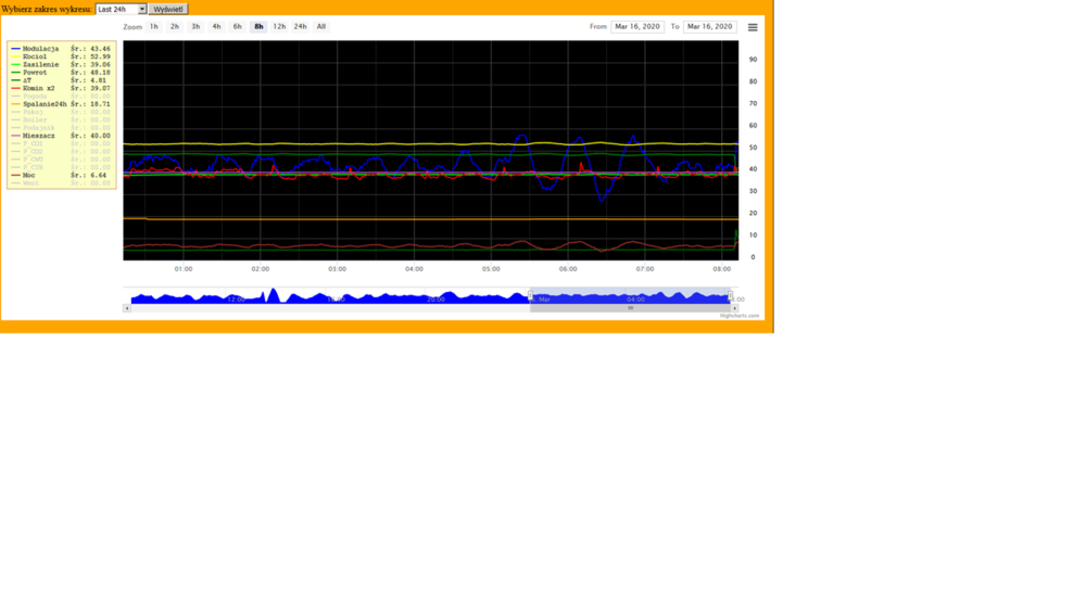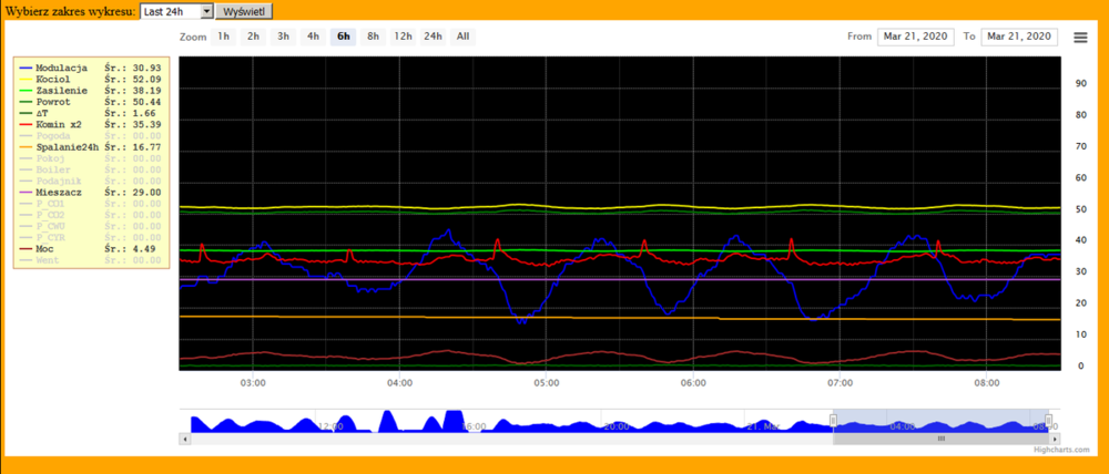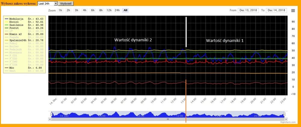 Wyniki testu przy wzmocnieniu dynamiki 1. Obecnie testuję wzmocnienie 2, na początek wzrosło nieznacznie spalanie. Instalacja z grzejnikami i zaworami termostatycznymi, pompa CWU włączona na stałe. -