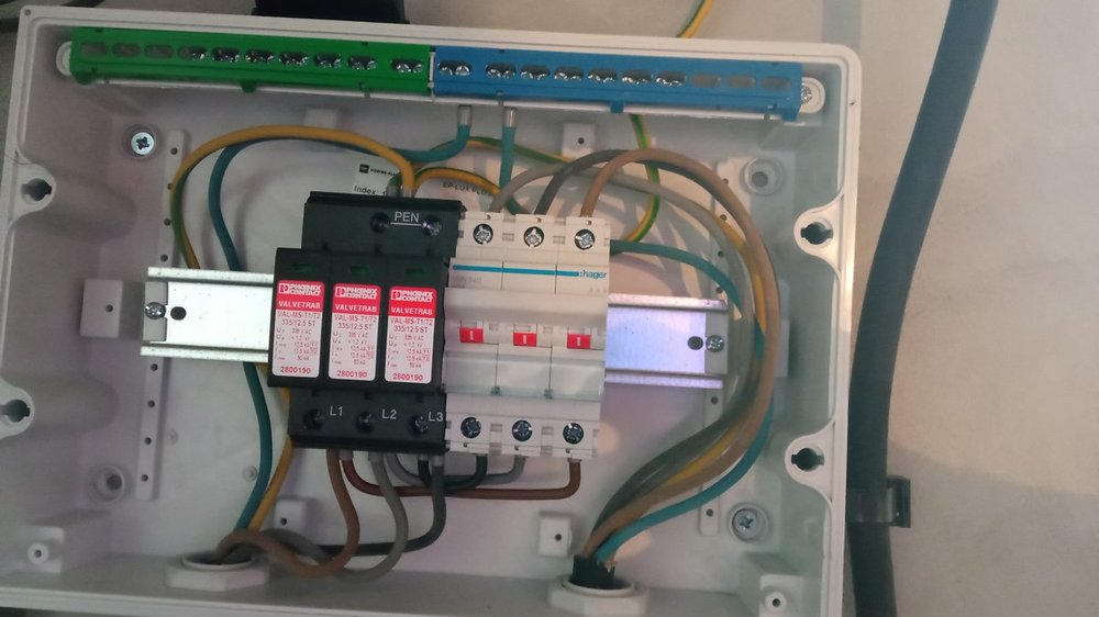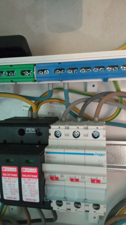 U mnie jest tak, uziemienie i zdjęcie zabezpieczeń. Instalacja na stelażu naziemnym, stopy wbetonowane na metr. -