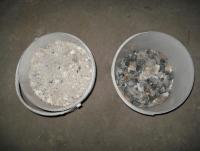 Pozostałości po spaleniu worka Silesii (25kg), Paliło się ponad 18h (5,6h z temp 80 stopni, pozostały czas 60 stopni). Przez ten czas rusztowałem 2 razy. Po lewej stronie z popielnika, po prawej z nad rusztu. Około 1/4 zawartości worka.