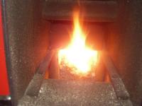 Witam, przesyłam kilka fotek tej mojej przeróbki: żar w głębi komory spalania, kocioł w cyklu nadzoru płomienie w kilkanaście sekund po przejściu w cykl pracy płomienie pod koniec cyklu pracy Sprawdziło się to o czym na tym forum pisali między innymi koledzy heso i kogeneracja, czyli to że do dokładnego i bezdymnego spalania oprócz odpowiedniej dawki powietrza potrzebna jest również bardzo wysoka temperatura, której nie może być w komorze otoczonej ze wszystkich stron zimnymi blachami. W tej chwili palenisko pracuje trochę tak jak obrócona o 90 st. retorta, a trochę tak jak kocioł z dolnym spalaniem. Co do minusów to zmniejszyła mi się o około 1/3 powierzchnia paleniska ze względu na leżące na nim boczne płytki szamotki, a więc zmniejszyła się napewno moc kotła. Już musiałem o 1 min. wydłużyć czas przerwy podajnika i zmniejszyłem nadmuch z 5 na 3. Na szczęście kocioł jest przewymiarowany. Obawiam się również blokowania przesuwającego się opału, ale na razie idzie dobrze. Co do dalszych przeróbek to muszę jeszcze tak jak ty przykręcić coś na mocno nagrzewające się drzwiczki na które bezpośrednio bucha płomień z paleniska. Ruszt mam z 50 otworami i zastanawiam się czy nie zwiększyć ich ilości. Kocioł ma ustawiony na 55, cała instalacja c.o i c.w.u na grawitacji, jest zawór 4d na c.o. PID w tej chwili wydaje się zbędny. Na koniec mam pytanie: czy ta skośna blacha przy podajniku jest w płaszczu wodnym czy nie? Czy można ją przewiercić na wylot?