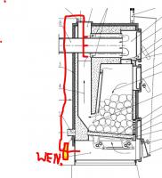 Ja dałem powietrze wtórne w wycietych bruzdach wewnątrz szamotu zmniejszającego palenisko a zarazem tworzącego palnik dymu POLECAM! tak jak w załącznikach można tak dać w innych kotłach............rewelacja działania Piec ZĘBIEC KWKD 22 Powietrze jest tam gdzie ma byc no szkoda że mam dmuchawę (wylatuje w lecie na śmietnik daje miarkownik ciągu) Najlepiej jak by dac powietrza z zewnątrz kotła