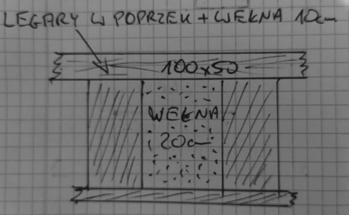 1. Witam, Posiadam dom parterowy z lat 70 z nieużytkowym poddaszem , murowany z pustaka żużlowego, dach kryty eternitem. Przekrój przez strop wygląda mniej więcej tak: Sporo się naczytałem na temat dociepleń takich stropów i chciałem podpytać szanownych forumowiczów czy dobrze sobie to wykoncypowałem. Wariant 1 - wełna 20 cm między legary Wariant 2 - wełna 10cm + 10cm na przemian coby mostków termicznych się pozbyć Wariant 3 - na bogato - wełna 20cm na to legary poprzecznie i między nimi wełna 10cm. Nie ukrywam że ze względów finansowych w tym sezonie jestem w stanie wykonać tylko wariant 1 lub 2 W związku z powyższym mam kilka pytań: 1. Jeśli docelowo za rok lub dwa będzie wariant 3 to czy jest sens na razie docieplać 2 x 10 cm czy od razu 1 x 20 cm? 2. Czy pod wełną konieczna jest folia paroizolacyjna? 3. rozmawiałem ze sprzedawcą i odradził mi wełnę z lambdą 0,39 bo podobno po jakimś czasie zapada się i traci swoją grubość, poza tym jest mniej "zbita" od np 0,35. Jeśli jest taka różnica między 0,39 a 0,35 jestem skłonny dopłacić do tej lepszej. 4. Firma ma jakieś znaczenie czy po prostu wybrać najtańszą o zadanych parametrach? Z góry dziękuję za podpowiedzi.