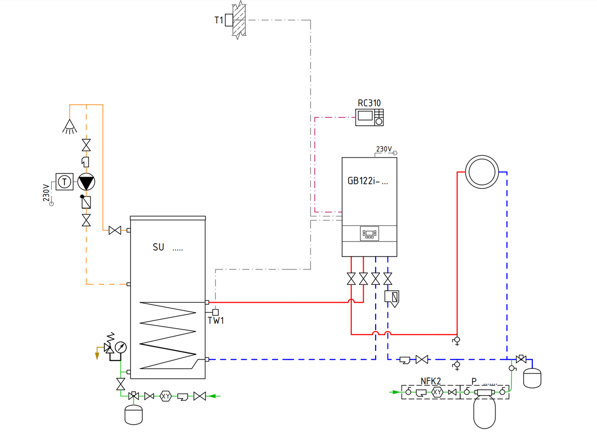 Myślałem ze przy moim domu wystarczy bardzo prosta instalacja tj. kocioł z niską mocą startową, zbiornik, pogodynka (z posta powyżej rozumiem, że nawet pogodynka nie potrzebna) i w sumie tyle. Tak jak na schemacie poniżej