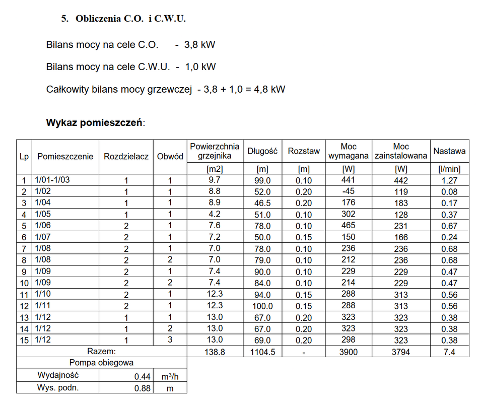 Mój dom ma bardzo dużą bezwładność (silikat + 9-11 cm jastrychu cementowego). 100% ogrzewania podłogowego. Nie chcę stref i automatyki na rozdzielaczach. Cyrkulacja sterowana czujnikiem ruchu bez ingerencji kotła. Mam dwa rozdzielacze 8 pętli i 7 pętli. Odpowietrzniki automatyczne na belkach z ciepłą wodą. Około 1100 m rury. Pętle zrobione zgodnie z projektem. Od kotła do rozdzielacza nr 1 (w łazience) jest 10 metrów rurą PEX 32. Rozdzielacz nr 2 jest w kotłowni. Zbiornik 120/140 l na 3-4 osoby. CWU na rozdzielaczu z cyrkulacją.