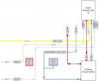 Zmieniłem obieg CO cały na miedź 28 mm - nie będzie przejść średnic poza redukcją z króćca w kotle, który jest 3/4 cala. Czyli od samego kotła na CO idzie rura 1 calowa. Jak to w życiu, nie wszystko sprawdziłem (wymiary króćców kotła i zasobnika) i musiałem dokonać korekty schematu - załączam zmodyfikowany. Mam trzy pytania: 1. Zauważyłem, że zawór kulowy z filtrem na wejściu ma dużo mniejszą średnicę wewnętrzną (przepływu wody) niż na wyjściu - dlaczego? Czy to kwestia producenta zaworu czy raczej taka zasada? Zamówiłem osobny filtr aby zobaczyć czy tez jest taka różnica - chodzi o zawór 1 calowy na powrocie CO 2. Czy są jakieś przeciwwskazania do używania do końcowego podłączenia gazu, elastycznego przewodu gazowego? 3. Dlaczego przyłącze CWU w kotle jest 3/4 cala a kocioł ma 1 cal? Co za dziwna niekonsekwencja...? A może jest sens - podobnie jak dla CO - od razu z kotła dać redukcję 3/4 na 1 i przejść do zasobnika rurą 1 cal? -