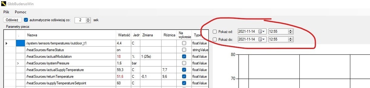 Proszę bardzo: Wersja 3.2 - Dodano możliwość wskazania przedziału czasu, który ma być pokazany na wykresie.