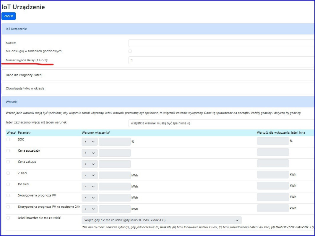 GbbOptimizer inwerterów hybrydowych: https://gbboptimizer.gbbsoft.pl/ Wersja 16.11 - Nowy warunek sterowania urządzeniami IoT: min/maks/śr napięcie sieciowe (V) – umożliwia sterowanie urządzeniami na podstawie obecności lub braku sieci. -
