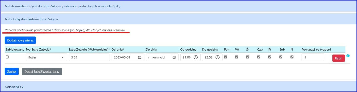 GbbOptimizer inwerterów hybrydowych: https://gbboptimizer.gbbsoft.pl/ Wersja 16.12 - Nowe narzędzie: AutoDodaj: Pozwala zdefiniować powtarzalne ExtraZużycia (np: bojler), dla których nie ma liczników -