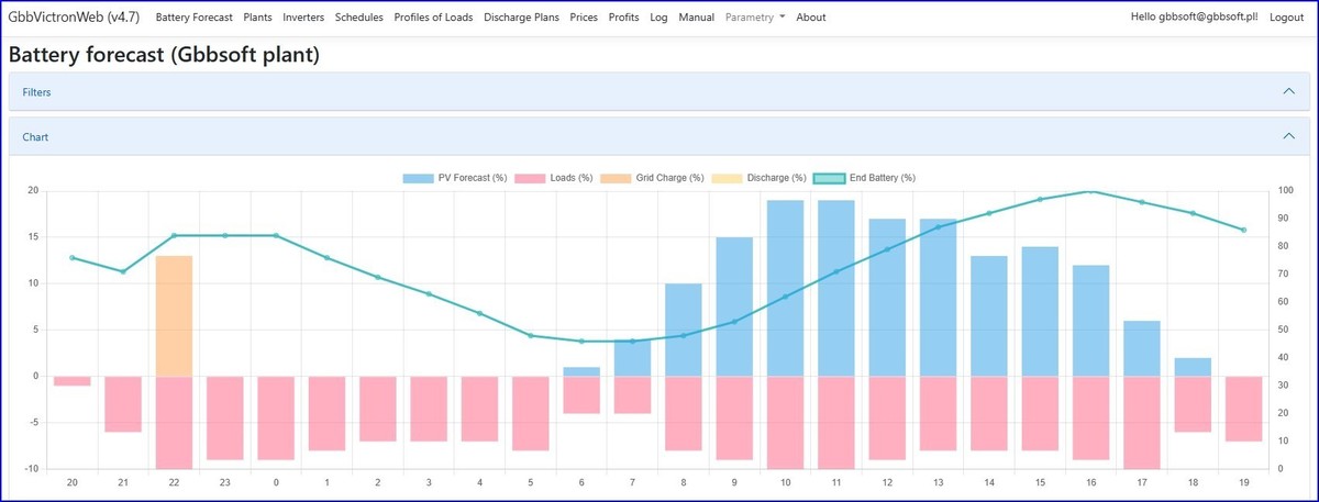 Wersja 6.5 - Battery forecast: W filtrach możesz włączyć pokazywanie danych z przeszłości (z modułu Zyski/Zyski) do x dni i y godzin. -
