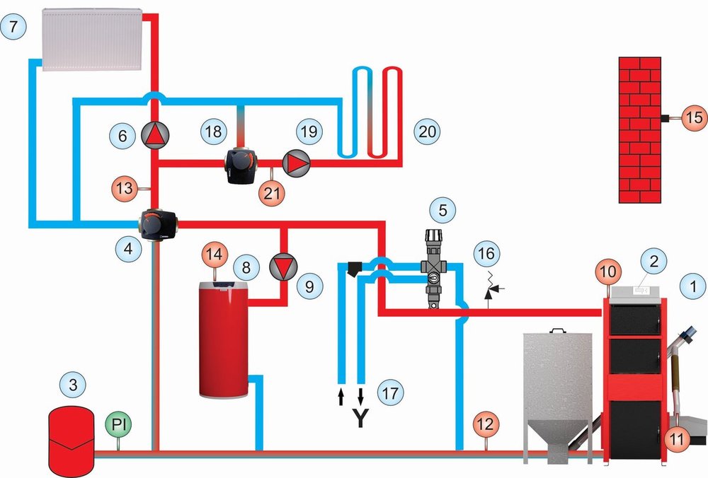 Zobacz, tak miałem podłączony zawór bez pompy przewałowej , po prawej stonie rura górna zasilanie, dolna powrót do pieca no i do gory od zaworu zasilanie na centralne i od lewej powrót z CO, na tyle to było kłopotliwe ze na powrocie była zawsze niska temperatura i piec się cały czas rozpalał a kilka razy było tak ze spalił cały podajnik peletu w jeden dzien ( zapowietrzył sie gdzies na zaworze czterodrogowym ) no i oczywiscie go nie otwierał bo jest włączona ochrona powrotu .Teraz zmieniłem całą instalacje i w końcu to wszystko normalnie chodzi oczywiscie z pompą przewałową- 1799 odpowiedzi