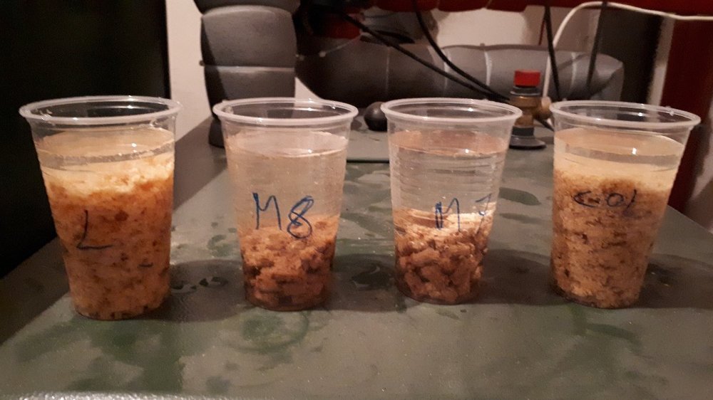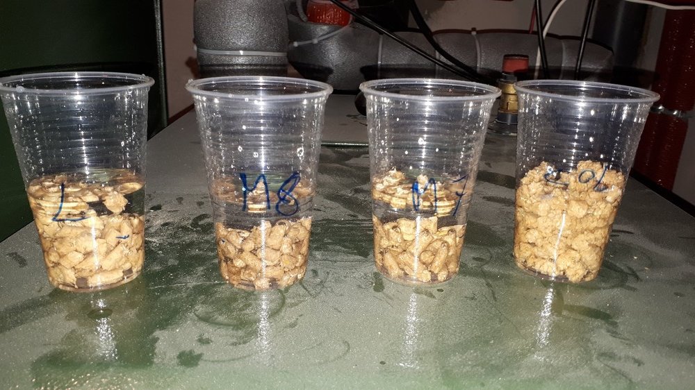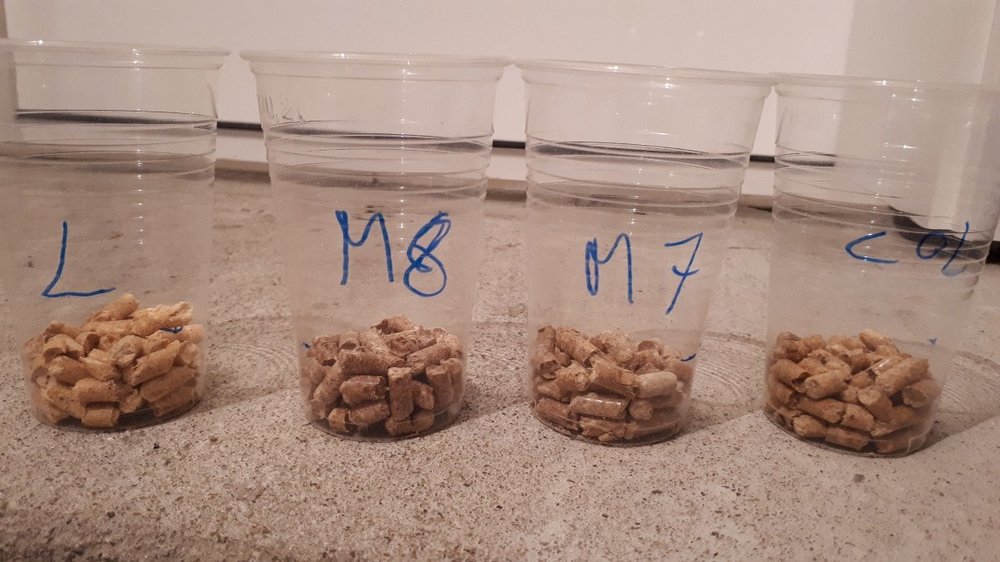 Ja palę tym Maximerem już 2 sezon i w zeszłym roku spieków nie było. W tym roku po spaleniu 200kg mam w popielniku ze 3 grudki wielkości kciuka - nie stanowi to żadnego problemu dla mnie, kupowałem go po 750zł + transport. Po rozpuszczeniu w wodzie w porównaniu z Lavą ma grubsze i ciemniejsze trociny, myślę że składa się głównie z trocin drzew liściastych (może to być brzoza bo znalazłem kawałek łuski kory brzozowej w jednym worku). Ma domieszane trochę trociny sosny. Poniżej test szklanki.3 zdjęcia robione w różnym odstępie czasowym. Kubki od lewej: Lava, Maximer 2018, Maximer 2017, Fireolet co to ma niby znaczyć? W lecie mają inne trociny, lepsze?