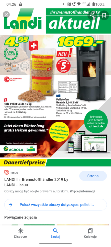 (...) Pellet w Szwajcarii podrożał jednak z 4.95 CHF na 7.20. Czyli tona pelletu dobrej jakości kosztuje tam ok. 2200 zł przy dzisiejszym kursie franka. -