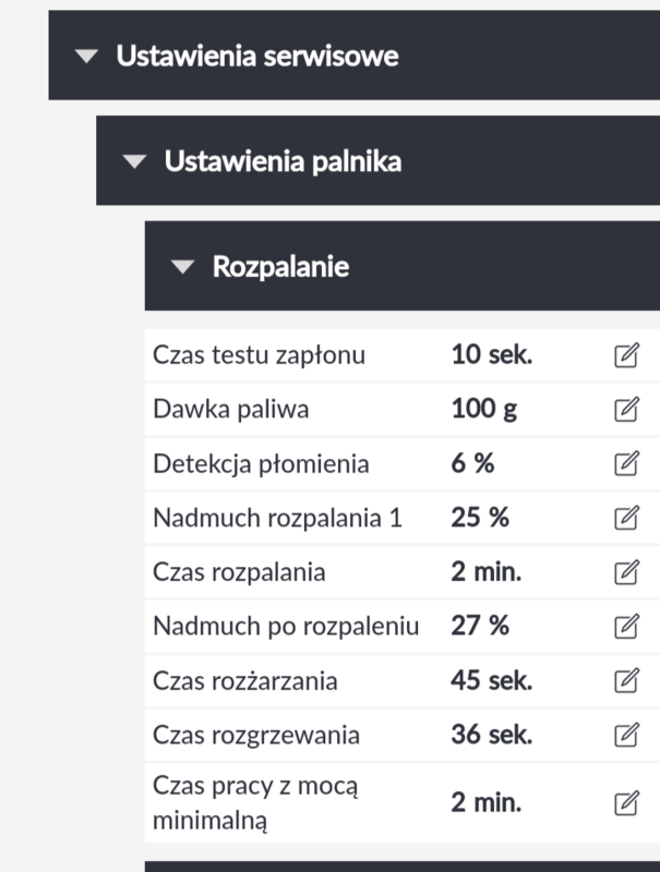 Panowie, jaki macie czas detekcji braku paliwa? Ustawienia serwisowe > Palnik -