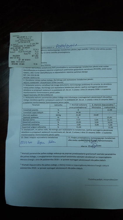 5. @Pankiew masz dokładny adres. Powiększ fotkę. Jak przefiltrujesz oferty na OLX po miejscowości to i telefon znajdziesz. Nie napisałem, ale druga partię też ważyłem i każdy worek to idealne 25,2 kg. Nie wiem czy to czasami nie powód do obniżki ceny. Ja Retopalu na pewno nie kupię. 185 zł na tonie to już nie są żarty. Może Ci z PGG się opamiętają jak Im ubędzie kupców. W tym sezonie mam już spalone 3t Retopalu i 250 kg (obecnie zasypane) Energo. Myślę, że jeszcze raz czy dwa zakupię 125 kg i podejmę decyzję. Szkoda, że w tym temacie nie wzięli go na warsztat: https://forum.muratordom.pl/showthread.php?209486-Ekogroszek-testy-i-ranking-wg-SUSPENSER Może byłoby łatwiej podjąć decyzję.