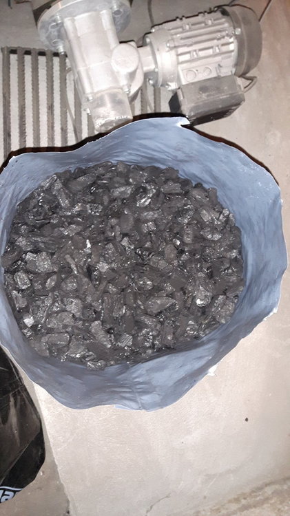 6. Spaliłem pierwsze 125 kg. Zasyp był w dniu 2019-03-14 o godzinie 20:04, czyli wystarczył na 8,5 doby. Przy tej temperaturze spalanie wyszło podobnie do Retopalu. Na pewno trzeba podkręcić dmuchawę. Tak jak w przypadku Retopalu miałem stłumioną tak tutaj trzeba dawać więcej wiatru, ale to chyba na plus, bo jest znacznie mniej sadzy n iż przy Retopalu (gdzieś czytałem, że im mocniej się dmucha tym mniej sadzy). Popiołu wyszło 8 kg 250 g. Ten spoko, bez spieków, itp. No i na sam koniec wisienka na torcie - 260 g kamieni! Niestety podczas zasypu ich nie widać. Dopiero w popielniku się ujawniają. I to użyłem sitka. Dzisiaj rano zasypałem kolejną partię 125 kg. Ta wilgotniejsza niż poprzednia, tj. porównywalna z Retopalem. Tańsza, bo 780 zł/t. Kobieta na składzie ostrzegła jednak, że już cena raczej nie spadnie.