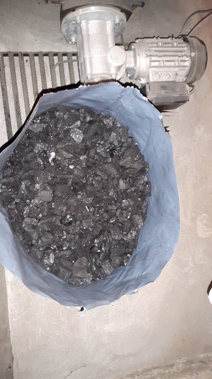 3. Tak się zastanawiam ile taka płuczka może kosztować. Spaliłem drugie 125 kg. Cena: 97,50 za 5 worków (780 zł /t). Zasyp odbył się dnia 2019-03-23 i wystarczył na 9 dni i 5 godzin. Statystyki: - popiół: 9,75 kg - kamienie: 366 g - sadza: 455 g 20190401_120042.mp4
