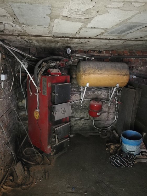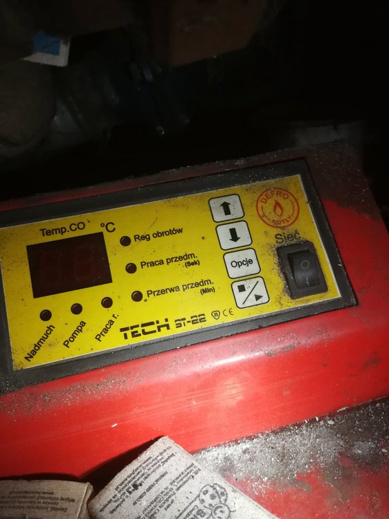 Wszyscy chcą dokładny opis jak ma instalacja wyglądać więc tak. Była stara na tym kotle defro komfort eko plus 13kW, ale wszystko zostało zdjęte (zdjęcie dla uzasadnienia czemu) położona podłogówka 9 obwodów (nie chce sterowania głowicami na rozdzielaczu tylko na zasadzie włącz wyłącz podłogówkę gdy pomieszczę już będzie dogrzane. Mieszacz będzie termostatyczny. Do tego grzejniki z głowicami termostatycznymi i CWU, zabezpieczone dwoma grupami bezpieczeństwa. Czyli do ogarnięcia cztery pompki i dmuchawa. Nie wiem co jeszcze chcieli byście bym dodał. Kotłownia w piwnicy i dla tego zależało by mi by mieć jakiś panel na parterze który będzie mnie informował co się dzieje na dole. Czyli temperatura kotła itd. Obecny sterownik to tech st-22 bez możliwości podłączenia panela pokojowego dlatego chciał bym go zmienić. Poprzedni właściciel nie raczył nawet zrobić drzwiczek do komina i wygrzebywał sądzę przez piec masakra. Ryni ten jest ciekawy dosyć tech ST-296, ale cena tego panelu plus sterownik do tego dość ciekawa wychodzi tym bardziej, że trzeba by było że dwa takie bo jeden ogarnia tylko dwie pompki;)