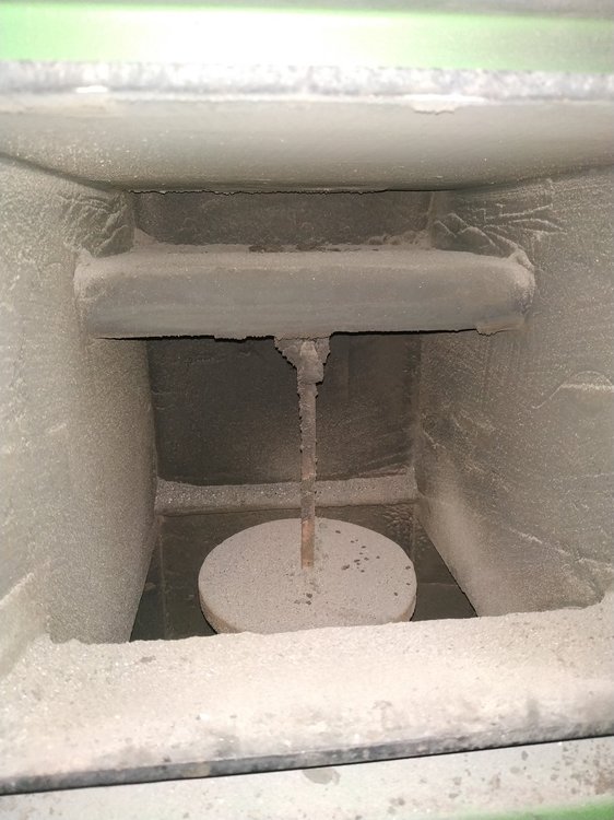 Tak wygląda palnik po ponad dobie. Trochę spalanie mnie satysfakcjonuje bo dziś przekracza 9 kg ( w nocy -1)Wczoraj pokazywało 8kg. Jak patrzę na niektórych wyniki po 6 kg na większych metrażach to włos siwieje. Bo co będzie zimą -