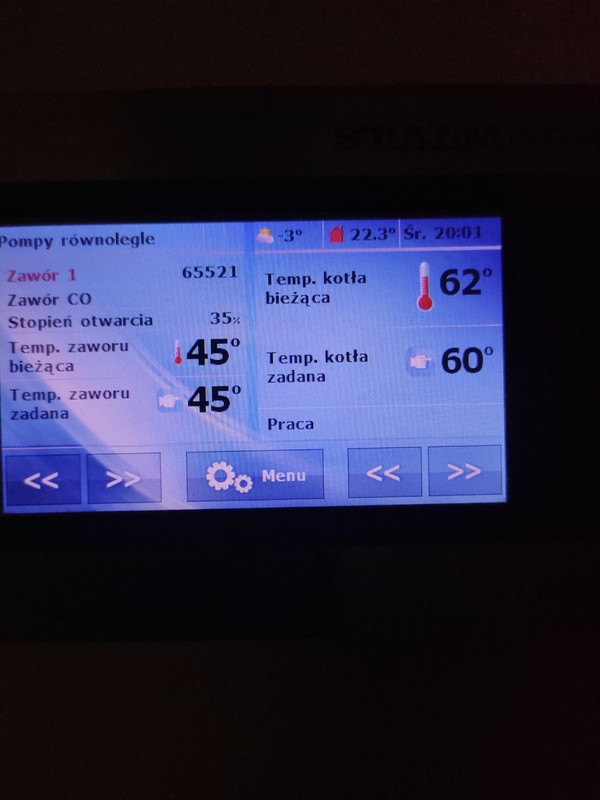 Pytanie czy masz włączoną ochronę powrotu ? Jeżeli tak to ja wyłącz bo ta funkcja może ci zakłócać pracę kotła. A przy zaworze 4d z pompa na powrocie jest ona zbędną. 65 jest ok. Chociaż 60 powinno wystarczyć bo w Pid i tak przebija 5 st. Jest jeszcze kwestia ustawienia zaworu a raczej siłownika, czas otwarcia, min otwarcie, skok jednostkowy. Podaj jakie masz. Sprawdzenie o które pytasz dot. Sterownika kotła. Nie musisz za każdym razem cytować.