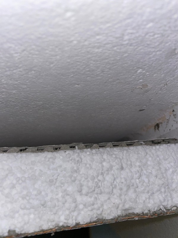 Witam , Dwa miesiące temu został ocieplony sufit piwnicy nieogrzewanej w moim budynku , sufit nośny zagruntowany dalej klej do styro na grzebień na płytę eps100 5cm oraz na sufit potem siatka klej i farba . Dzisiaj jest to co widoczne na zdjęciach przy jednej ze ścian styropian odpadł widać po białym odcięciu , że to wisi siła ręki można to trochę dźwignąć ,tak samo 2 metry w głąb pomieszczenia odspoiło ,ale przy 3 ścianach w tym pomieszczeniu trzyma normalnie , obok w drugim pomieszczeniu narazie widzę tylko spękany akryl , który był położony wokół ścian . Pytanie co zawiodło , co się stało , robiła to osoba zlecona , widziałem prace każdy etap sam nie wiem co jest nie tak . Naprawa to chyba odcięcie tego głuchego i od nowa klejenie …