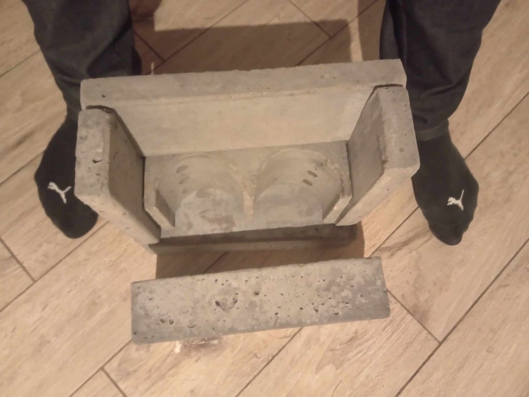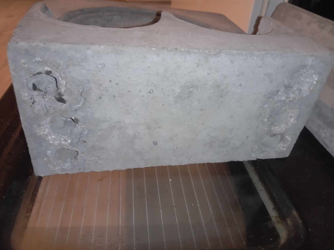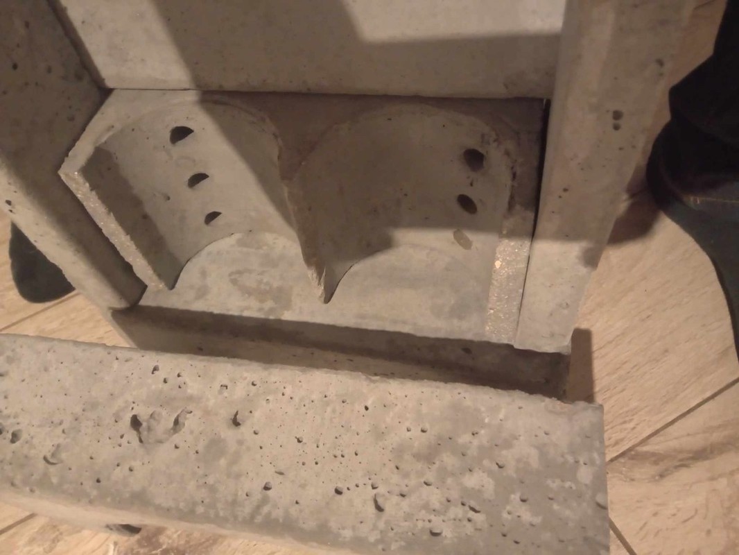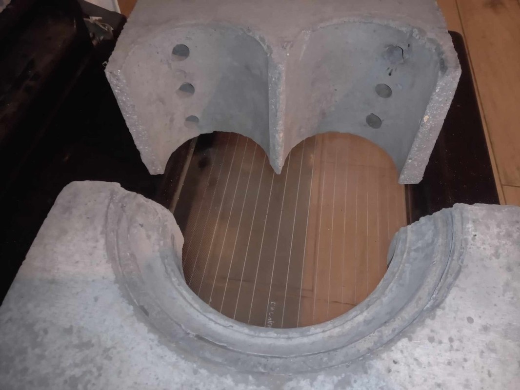 Minął właśnie miesiąc od zrobienia moich odlewów z betonu Bok150- tj. kpl przegroda palnik wirowy i wszystkie cegiełki wokoło. Nic nie popękało, ceramika się wypaliła na biało. W dźwięku przypomina trochę stukanie o kubek A tak to wygląda