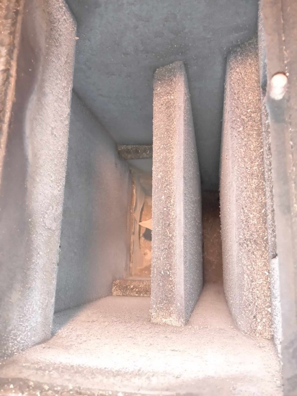 Komu rozwaliła sie ceramika w MPM DS - albo pekła przegroda polecam kupić beton BOK 150 z Fenixusa i samemu odpać wszystkie cegiełki , przegrodę i palnik wirowy + zaizolowac całosć papierem ceramicznym 2mm -dać 2 warstwy Dzieki temu ceramika sie lepiej nagrzewa i piec wszystko dopala i jest dosłownie zero sadzy. Dodatkowy plus to że dzieki półokragłej przegrodzie (pole pow wlotu w przegrodzie to dokładnie 100cm2) - piec mniej dymi na kotłownie przy dokładaniu i rozpalaniu i wogóle nie zapycha sie popiołem. Zastosowałem wydłużenie szpili palnika wirowego ale całość jest zrobiona na wzór oryginału - na jest to lepsze niż oryginał. Ps robiłem to sam 1 raz w życiu i jest bajka. (wiecej info w temacie KLUB użytkowników MPM DS). A tak wygląda po wypalaniu.: