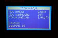 Witam. Wczoraj napykałem kilka fotek. Postaram się zobrazować ustawienia mojego kotła. Dzisiaj był hydraulik pogmerał trochę i zwiększył nadmuch. mówił że jeszcze później zajrzy jak się rozpali na dobre, bo dzisiaj kocioł się zatrzymał z braku paliwa. Kupiłem dzisiaj na próbę 3 rodzaje peletu produkowanego w Suwałkach. Jeden brzozowy i dwa sosnowe. Wszystkie wyglądają dobrze. Przebadałem organoleptycznie, bo pani miała otwarty worek każdego rodzaju i można było sprawdzić osobiście. Zapach mają drzewny, jedynie te sosnowe pachną żywicą - wiadomo jak to sosna. Poniżej nasza mała kotłownia i ustawienia kotła.