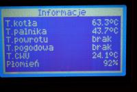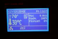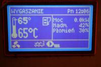 Płomień jest jasnożółty, ale zdjęcia tego nie oddają bo aparat zmniejsza przysłonę i tak wychodzi jak widać. Nadmuch został dziś zwiększony, ze względu na osad w kotle. Dziś hydraulik już zainstalował sterownik pokojowy, więc jutro testy i zobaczymy jak przebiega spalanie na nowym pelecie. Może ktoś zerknąć fachowym okiem na te ustawienia widoczne na zdjęciach wcześniej i teraz jeszcze dorzucam.