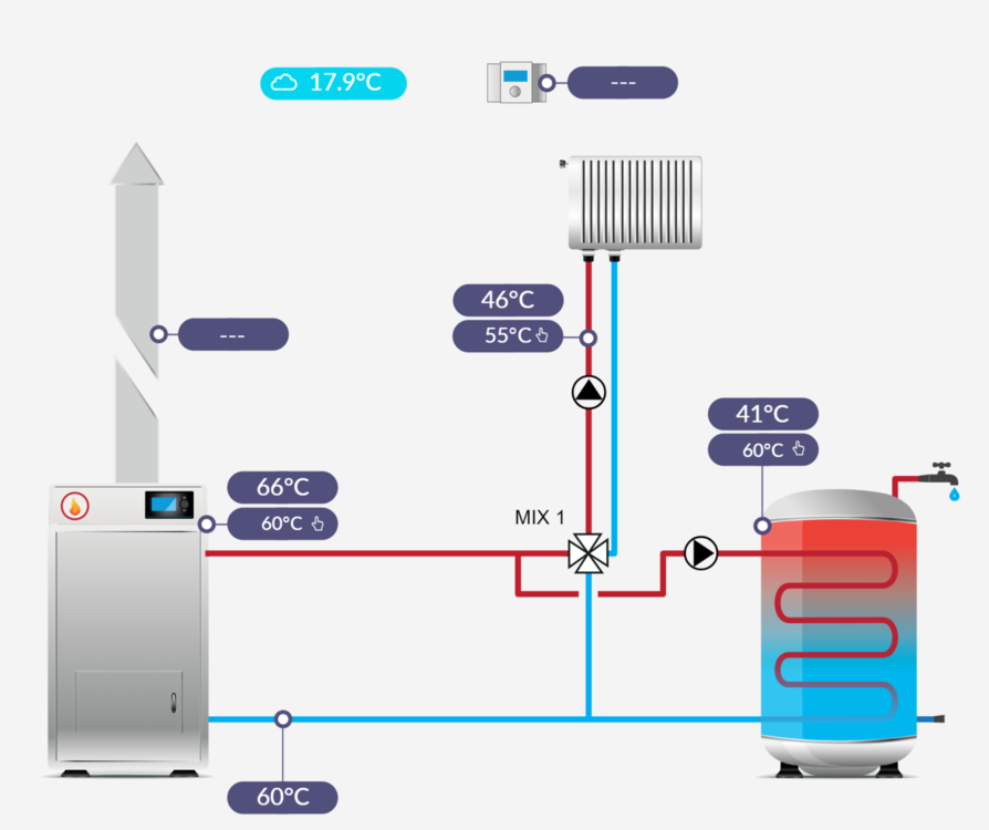 Wydaje mi się , że akurat econet tutaj nie wystarczy, z tego co oglądałem generowany schemat u mnie po podpięciu wszystkich czujników, to jedynie można odczytać temperaturę za mieszaczem przed grzejnikami oraz przy powrocie kotła, ale chyba nie było tam pozycji za grzejnikami przed zaworem...no chyba , że czujnik przeniesiesz. -