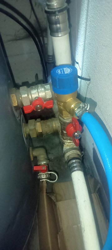 Tak wygląda podłączenie zimnej wody do bojlera. Nie wiem czy przed zaworem bezpieczeństwa jest ten zawór zwrotny bo nigdzie wcześniej nie ma nic podłączone. Ten biały pex idzie do naczynia przeponowego. -