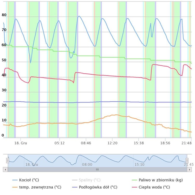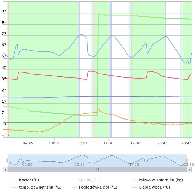 Niekoniecznie tutaj wykres z 1 listopada w nocy -8 tylko 3 odpalenia, ale palnik modulował z mocą 30% teraz mam ustawiony na 55% więc wszystko zależy tak naprawdę od ustawień. -