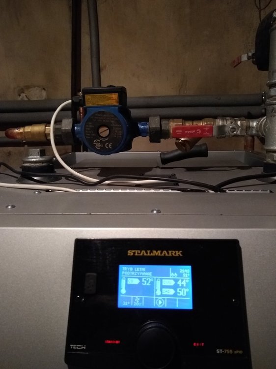 Rano sprawdzałem kocioł i temperatura była 50st, podajnik i wentylator pracowały, żeby chyba dobić do 53 (bo wtedy przeszedł w tryb podtrzymania). Zmieniłem trochę ustawienia podawania (zgodnie z twoimi sugestiami) bo wydawało mi się, że za długo i za często podawał. Zmniejszyłem też nadmuch na 50%.