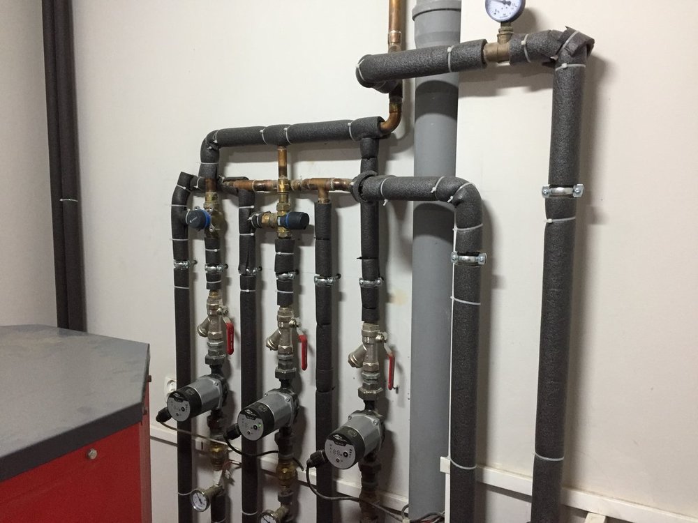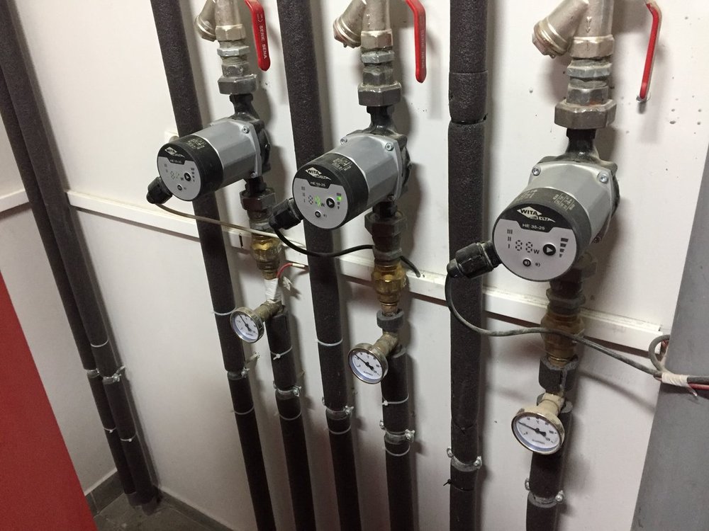 Od lewej pompa: grzejniki piętro + podlogowka w łazience. Chodzi non stop srodek: pompa od podłogówki na parterze, czujnik pokojowy prawa: pompa od cwo -