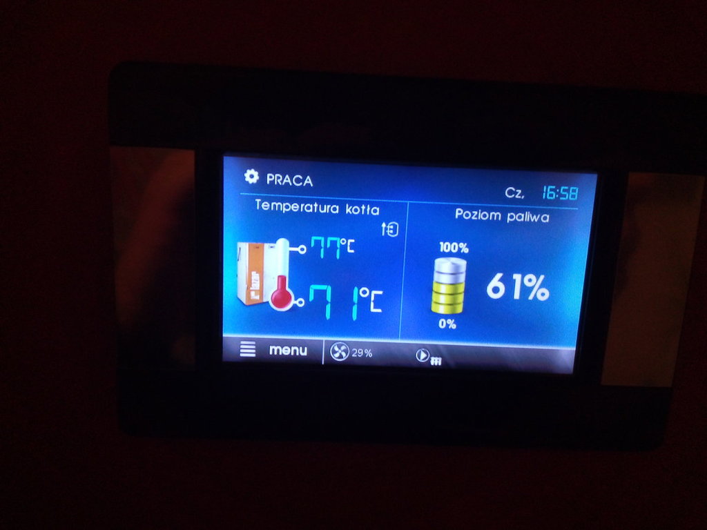 Na dobę bierze mi nieco ponad worek (na 12 godzin pracy 3x4 godziny w odstępach 4 godziny). Harmonogram mam tak ustawiony i się to sprawdza. Czyszczenie palnika co 4 godziny. Nie ma potrzeby żeby kocioł u mnie pracował na okrągło bo wtedy przechodzi w nadzór i się wygasza. Póki co nie będę więcej mieszał w ustawieniach. Mam ustawiony też priorytet dla CWU z obniżeniem nocnym od 22 do 6 rano.